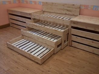Priedes koka četrvietīga izvelkamā gultiņa ar paceļamu vāku
